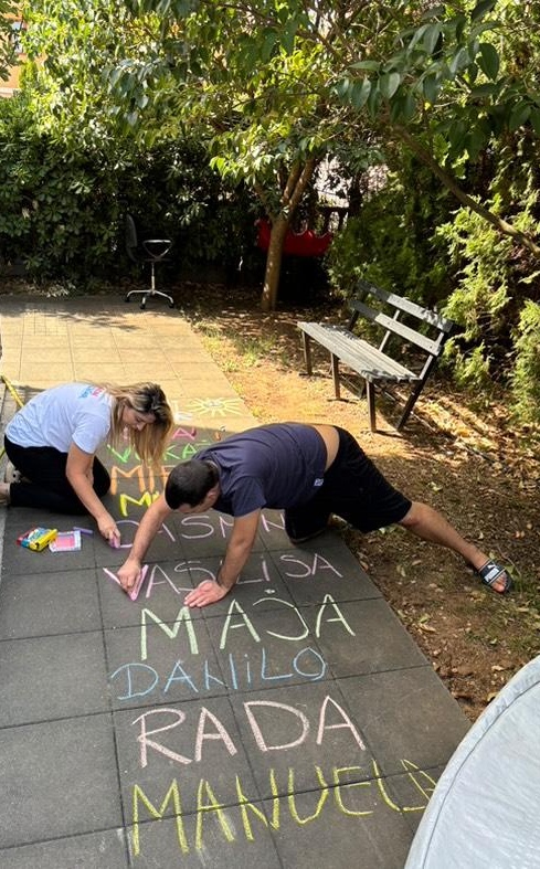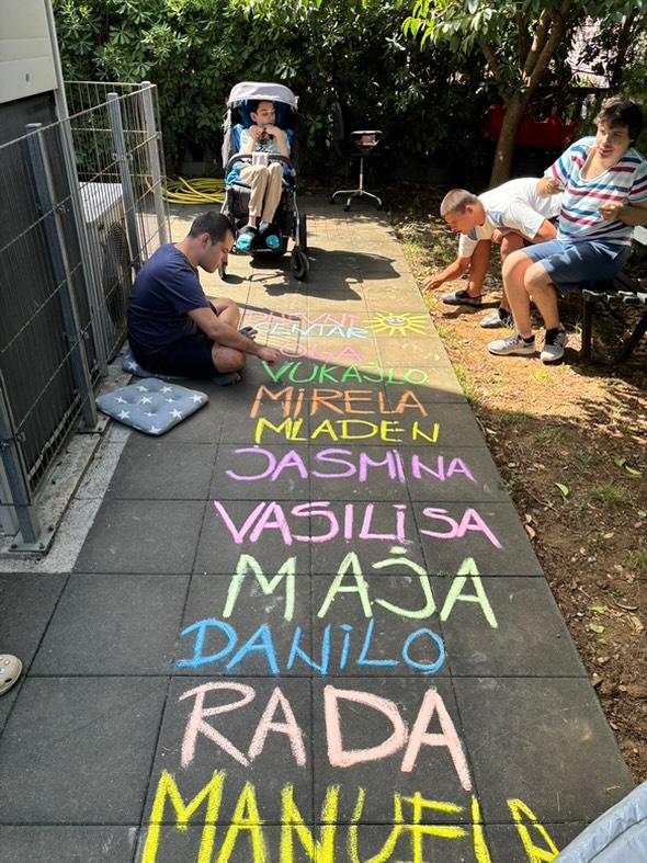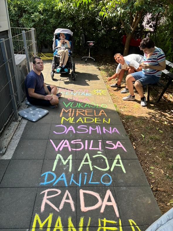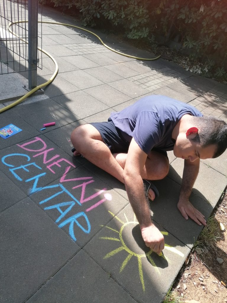 U dvorištu našeg Dnevnog centra održana je kreativna radionica pod nazivom „Imena koja volimo“. Uz pomoć raznobojnih kreda korisnici centra su ispisivali imena zaposlenih na stazi iza objekta.